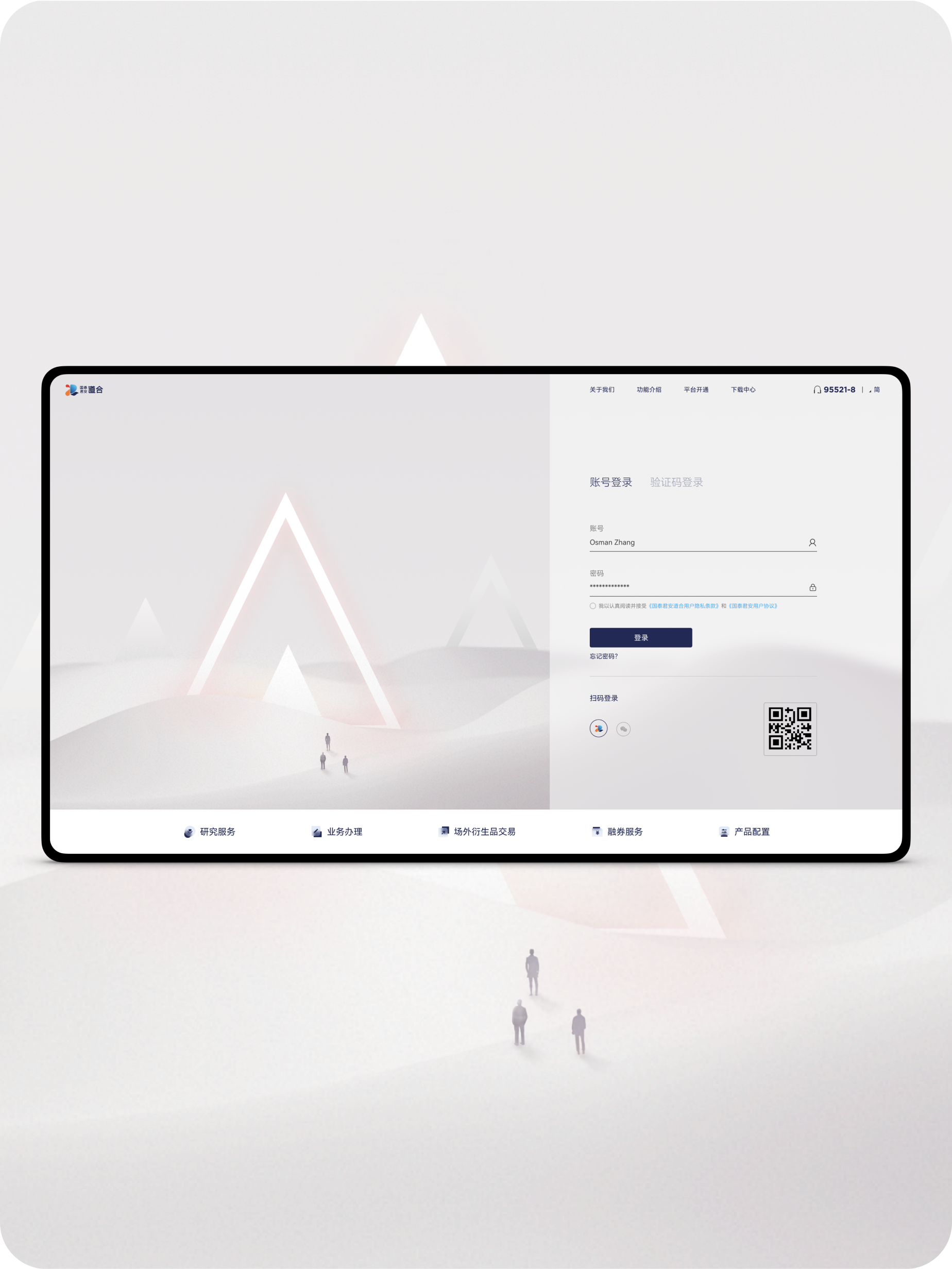 Designed the multi-platform login interfaces for Guotai Haitong Daohe, unifying the design system and optimizing the interaction experience to enhance brand consistency and professionalism.